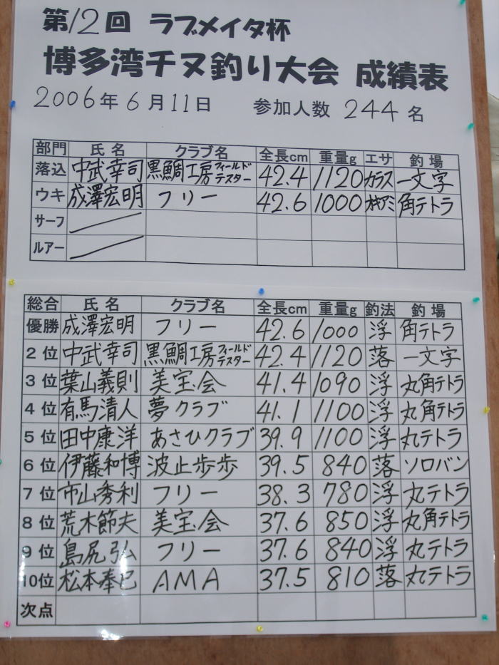 | 第12回ラブメイタ杯博多湾チヌ釣り大会 (6/11) |