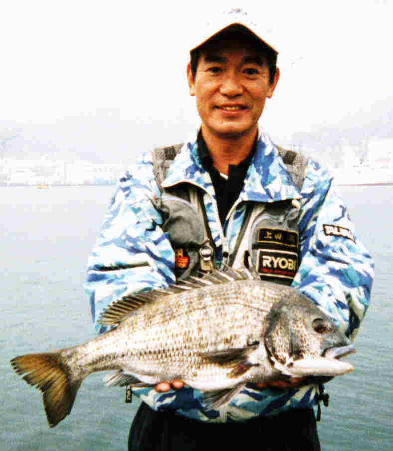 | ’1.8.16 | クロダイでなくイシダイ(これもあり!) 有名人3人の釣果。以下、上田会長の説明です。 五島列島、六島のはだか瀬で、左から上田、中村あたる氏、岩佐九磯福岡支部長です。 魚は上田…石垣鯛46〜7cm、1・8kg、 中村氏…本石56cm、2・8kg、 岩佐支部長…石垣、本石43〜45cm、1・5kgでした。 この他、落とし込みで釣れるような800gくらいの石垣は、かなり放流しました。 管理人感想; うまっそー! みなっさんも遠慮なく送ってね。 |